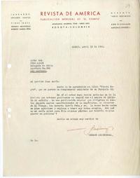 [Carta] 1945 abril 18, Bogotá, Colombia [a] Juan Marín [manuscrito] Germán Arciniegas.