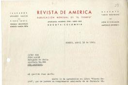 Materias: Manuscritos colombianos - Correspondencia - Autores chilenos - Autores colombianos - Marín, Juan - Arciniegas, Germán