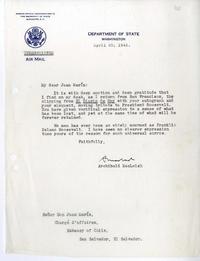 Agradece su homenaje al Presidente Roosevelt en "El Diario de Hoy" .