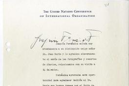 [Carta] 1945 mayo 8 [Washington, D.C.?] [a] Juan Marín [manuscrito] / Joaquín Fernández. 1 hoja ; 26,5 x 20 cm. .