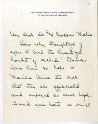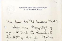 Con membrete "The United States High Commissioner to the Philippine Islands".
