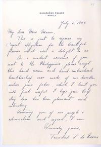 [Carta] 1946 julio 6, Manila, Filipinas [a] Juan Marín [manuscrito] Trinidad L. de Roxas.