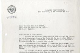 [Carta] 1947 octubre 9, San Salvador [a] Juan Marín [manuscrito] Salvador Castaneda Castro.