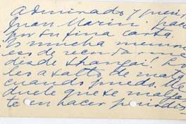 [Carta] [1945] Petrópolis, Brasil [a] Juan Marín [manuscrito] / Gabriela Mistral. 1 hoja ; 15 x 9 cm. .