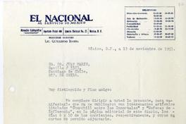 [Carta] 1953 noviembre 19, México [a] Juan Marín [manuscrito] Guillermo Ibarra.