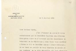 Comunica que el Presidente de la República de Egypto le ha otorgado la "l'Ordre du Nil de Deuxiéme Classe".