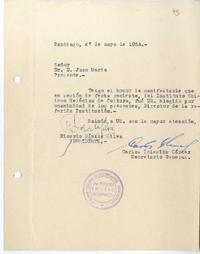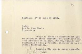 [Carta] 1954 mayo 27, Santiago, Chile [a] Juan Marín [manuscrito] Ricardo Dávila Silva.