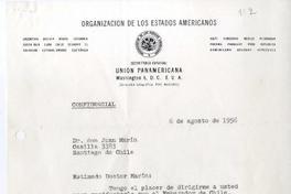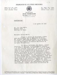 [Carta] 1956 agosto 6, Washington, D.C. [a] Juan Marín [manuscrito] José A. Mora.