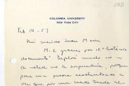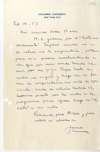 [Carta] 1957 febrero 14, New York [a] Juan Marín [manuscrito] Germán Arciniegas.