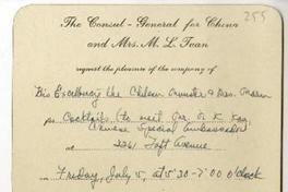 [Tarjeta] 1943, Washington [a] Juan Marín [manuscrito] / M.L. Tuan. 1 tarjeta ; 11 x 9 cm. .