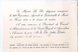 Invitación del Presidente del Consejo de Administración de la Sociedad de Agricultura a la "XVI Exposition Agricole et Industrielle".