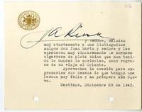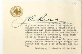 [Tarjeta] 1943 diciembre 23, Santiago, Chile [a] Juan Marín [manuscrito] Juan Antonio Ríos.
