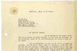 [Carta] 1949 mayo 17, Santiago, Chile [a] Juan Marín [manuscrito] / Gabriel González Videla. 1 hoja ; 28 x 21 cm. .