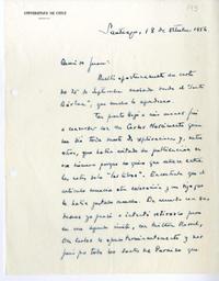 [Carta] 1956 octubre 18, Santiago, Chile [a] Juan Marín [manuscrito] / Sergio Huneeus. 3 hojas ; 27 x 21,5 cm. .