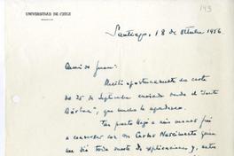 [Carta] 1956 octubre 18, Santiago, Chile [a] Juan Marín [manuscrito] Sergio Huneeus.