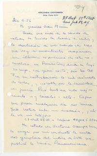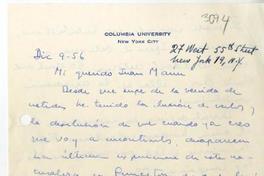[Carta] 1956 diciembre 9, New York [a] Juan Marín [manuscrito] Germán Arciniegas.