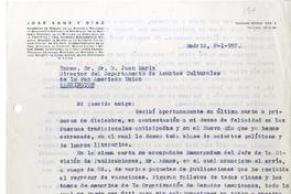 [Carta] 1957 enero 8, Madrid, España [a] Juan Marín [manuscrito] José Sanz y Díaz.