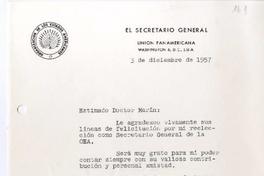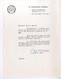 [Carta] 1957 diciembre 3 Washington, D.C. [a] Juan Marín [manuscrito] José A. Mora.