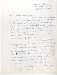 Comenta asuntos personales y otros relativos a la Conferencia Cultural Interamericana de San Juan.