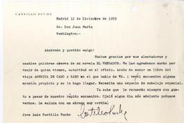 [Carta] 1956 diciembre 12, Madrid, España [a] Juan Marín [manuscrito] José Luis Castillo-Puche.
