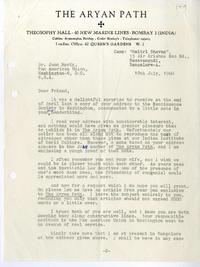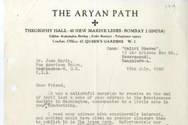 [Carta] 1960 julio 19, Bangalore, India [a] Juan Marín [manuscrito] Sophia Wadia.