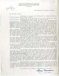 [Carta] 1963 agosto 14, Santiago, Chile [a] Juan Marín [manuscrito] / Julio Escudero Guzmán. 1 hoja ; 28 x 22 cm. .
