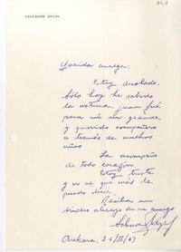 [Carta] 1963 febrero 21, Santiago, Chile [a] Milena Luksic [manuscrito] Salvador Reyes.