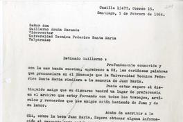 [Carta] 1964 enero 5, Santiago, Chile [a] Guillermo Acuña Macuada [manuscrito] Milena Luksic.