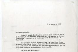 Agradece los acuerdos adoptados por "La casa de la cultura Ecuatoriana", con motivo de la muerte de Juan Marin.