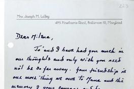 [Carta] 1963, Baltimore, Maryland [a] Milena Luksic [manuscrito] / Joseph M. Lalley. 1 hoja ; 19,5 x 14,5 cm. .