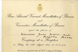 [Invitación] 1947, Burma [a] Juan Marín [manuscrito] Louis Mountbatten.