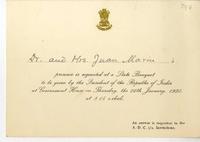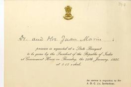 [Invitación] 1950, India [a] Juan Marín [manuscrito] Rajendra Prasad.