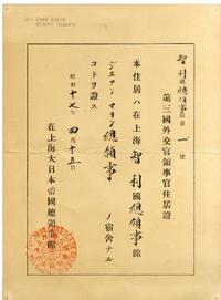 [Invitación] 1939, Shanghai [a] Juan Marín [manuscrito] / Japanese Consulate General. 1 hoja ; 25 x 19 cm. .