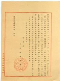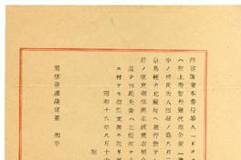 Carta del Consulado japonés a Juan Marín para ser presentada a las autoridades japonesas.
