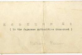 [Carta] 1939, Shanghai [a] Milena Luksic [manuscrito] / Japanese Consulate General. 1 hoja ; 25 x 19 cm. .