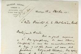 [Carta] 1911 noviembre 14, Santiago, Chile [a] Biblioteca Nacional de Chile [manuscrito] / Alberto del Solar. 1 hoja ; 26,5 x 21 cm. .