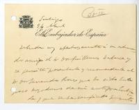 [Tarjeta] cerca de 1940 abril 24, Santiago, Chile [a] Guillermo Labarca Hubertson. [manuscrito] / Rodrigo Soriano. 1 tarjeta ; 14,5 x 11 cm. .