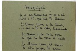 Madrigal [manuscrito] / José María Souvirón. 1 hoja ; 21,2 x 21 cm. .