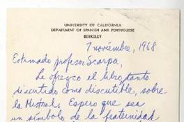 [Carta] 1968 noviembre 7, Berkeley, California [a] Roque Esteban Scarpa [manuscrito] Martín C. Taylor.