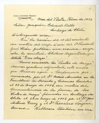 Comunica que envía datos biográficos sobre los "Pactos de mayo" de 1902, firmados por J. A. Terry y Francisco Vergara Donoso.