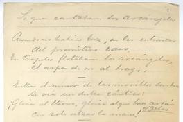Lo que cantaban los arcángeles [manuscrito] / Narciso Tondreau. 2 hojas. ; 20,9 x 16,8 cm. .