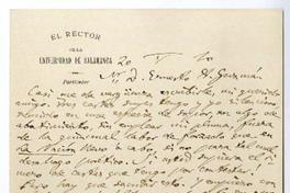 Hológrafo a tinta, firmado. Con membrete "El Rector de la Universidad de Salamanca".
