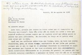[Carta] 1968 agosto 16, Madrid, España [a] Raúl Silva Castro [manuscrito] Vicente Urbistondo.