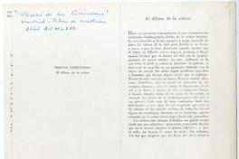 El dilema de la crítica [manuscrito] / Vicente Urbistondo. 6 hojas ; 28 x 21,5 cm. .