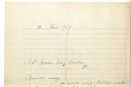 [Carta] 1929 abril 11, Santiago, Chile [a] Hernán Díaz Arrieta [manuscrito] Omer Emeth.
