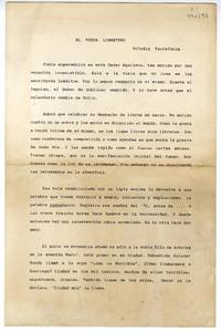 Al poeta libretero [manuscrito] / Volodia Teitelboim. 2 hojas ; 33 x 21,5 cm. .