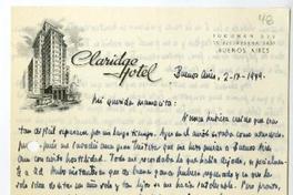 Papel con membrete "Claridge Hotel".