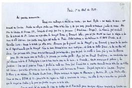 [Carta] 1950 abril 1, Paris, Francia [a su madre] [manuscrito] / Luis Oyarzún. 1 hoja ; 27 x 20,5 cm. .