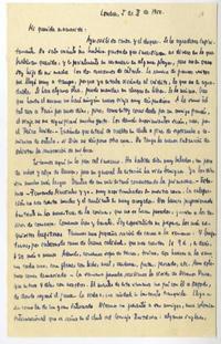 [Carta] 1950 febrero 1, Londres, Inglaterra [a su madre] [manuscrito] / Luis Oyarzún. 3 hojas ; 20,5 x 12,5 cm. .