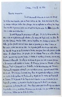 1 carta : Archivo del Escritor Biblioteca Nacional, Avenida Libertador Bernardo O'Higgins, Santiago, Chile.